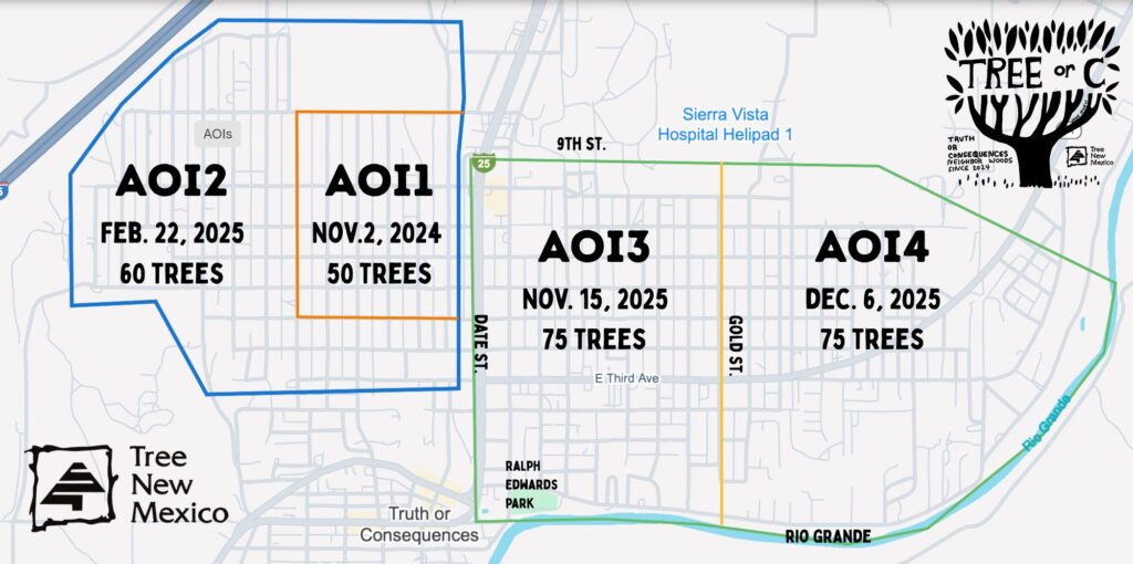 The T or C or TREE OR C program was established in 2024. Tree or C is sponsored & supported by Tree New Mexico's Statewide Program. TNM received a grant through the USFS Inflation Reduction Act to do statewide tree plantings over 5 years. As of February 22nd, 2025, 246 trees have been added to the Sierra County tree canopy thanks to this grant.