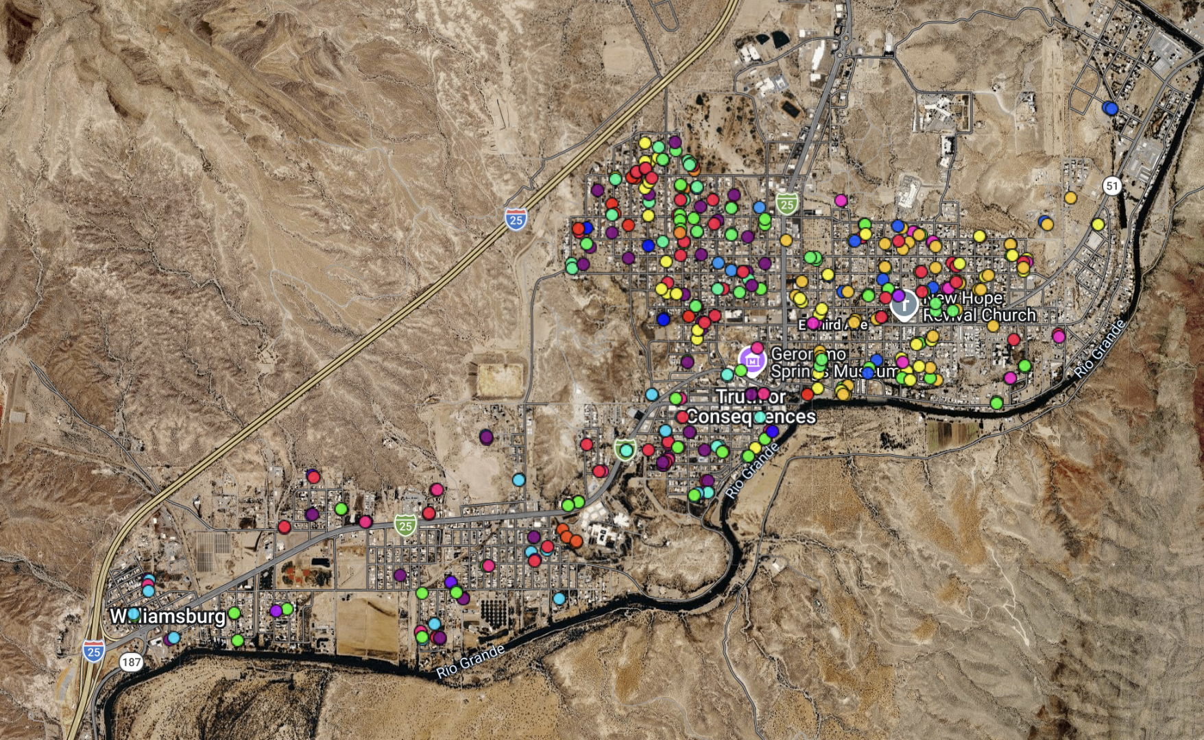 Each of the colorful dots in the above map represents a tree planted by our organization. 22 varieties!